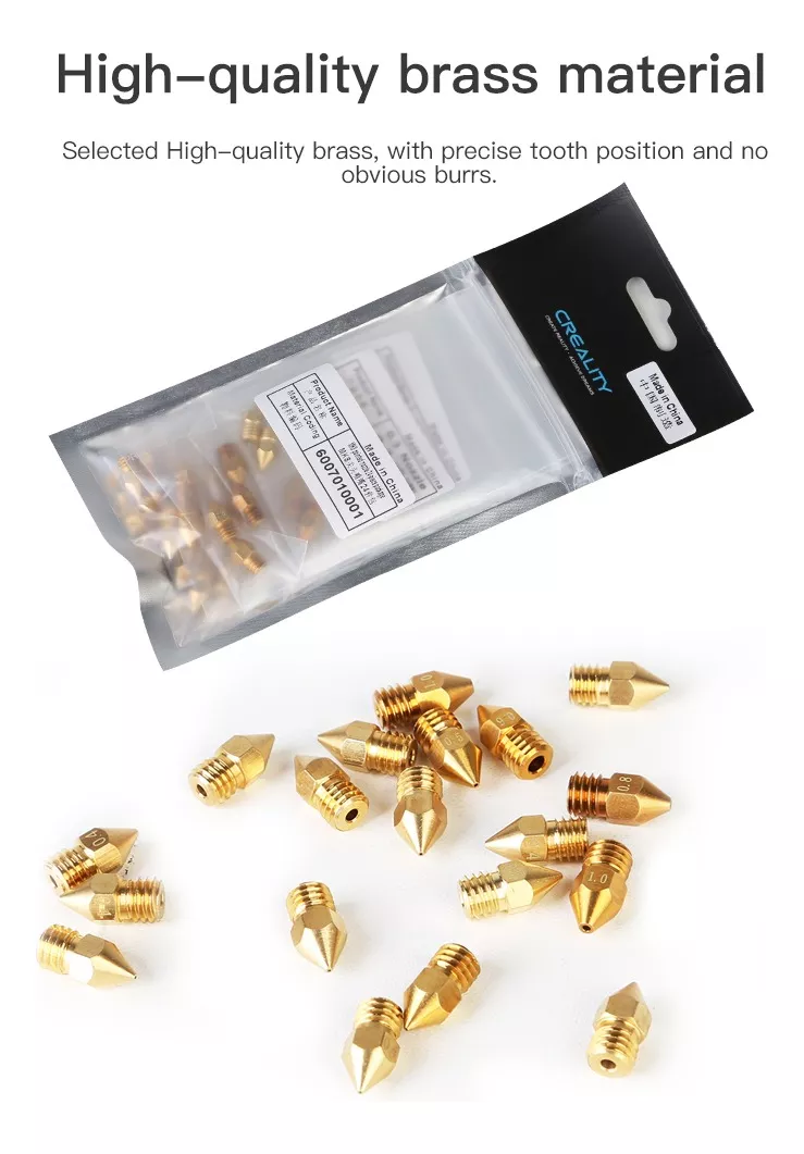 La pared interior de las boquillas MK8 es lisa y no tiene rebabas, su coeficiente de viscosidad es pequeño y el error en el diámetro de la boquilla del extrusor es menor de 0,02 mm, lo que le proporciona una extrusión precisa y suave.