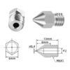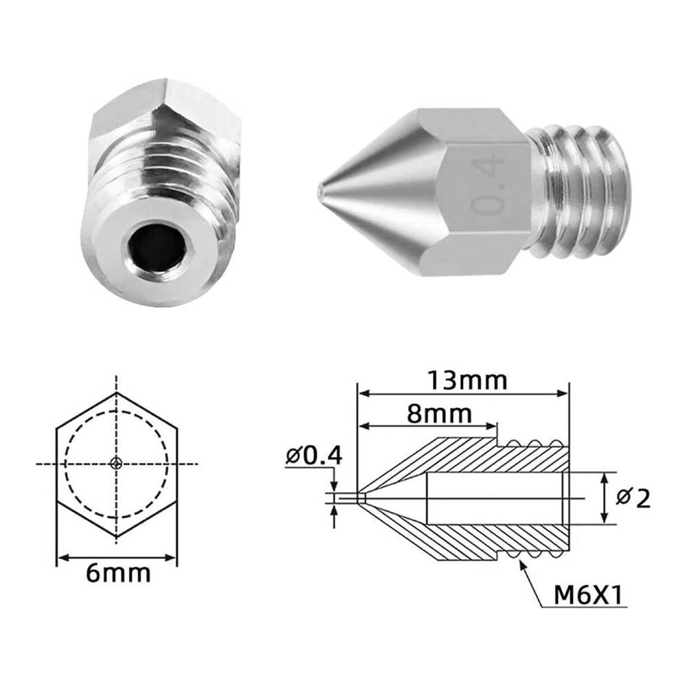 La pared interior de las boquillas MK8 es lisa y no tiene rebabas, su coeficiente de viscosidad es pequeño y el error en el diámetro de la boquilla del extrusor es menor de 0,02 mm, lo que le proporciona una extrusión precisa y suave.